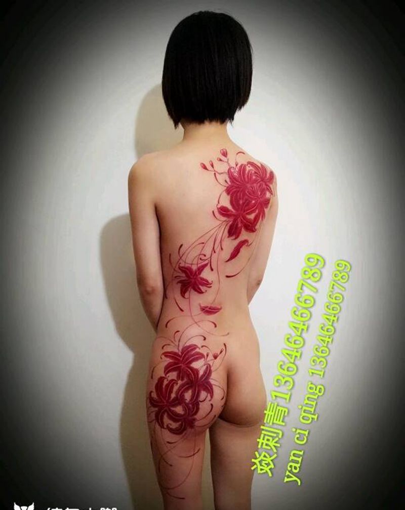 当前位置: 首页 >山东省潍坊市纹身店-焱刺青纹身工作室纹身图案>彼岸纹身图片_背部腿部清新植物成品纹身图案