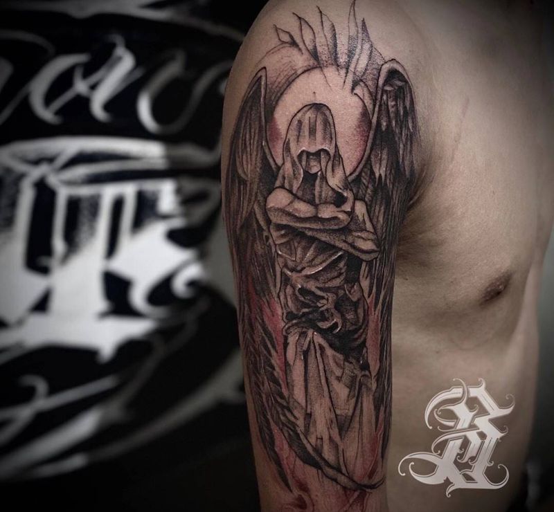 当前位置: 首页 >山东省济宁市纹身店-仙阁刺青纹身图案>天使纹身图片_手臂点刺纹身图案