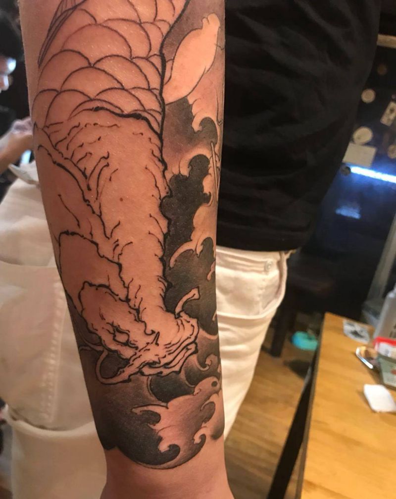 • T网红王老大花腿龙纹身图片_腿部新传统纹身图案