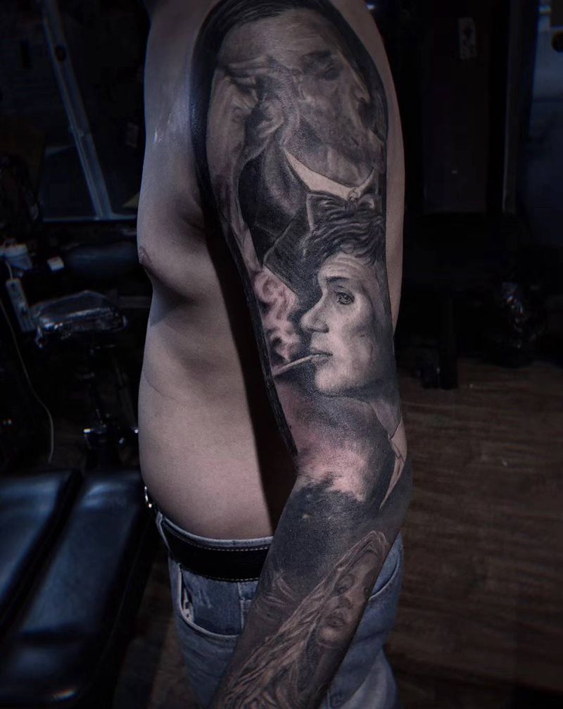 浴血黑帮系列纹身图片_手臂欧美写实纹身图案