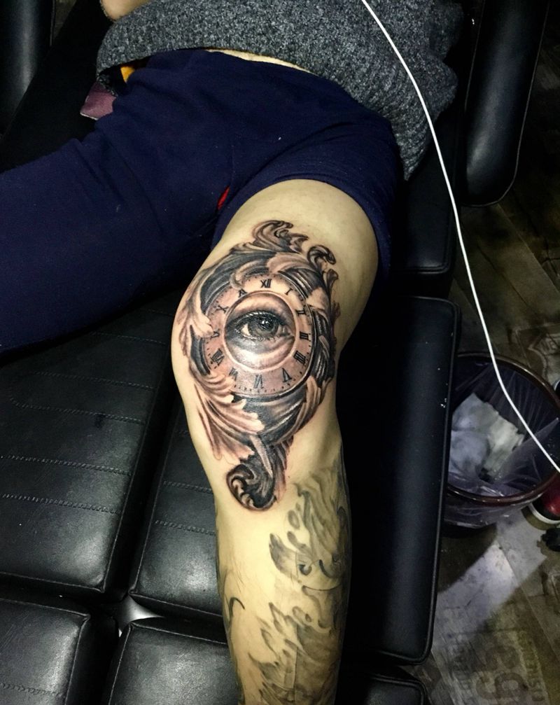 • T网红王老大花腿龙纹身图片_腿部新传统纹身图案