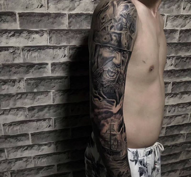当前位置: 首页 >山东省济宁市纹身店-仙阁刺青纹身图案>写实纹身图片_手臂欧美写实纹身图案