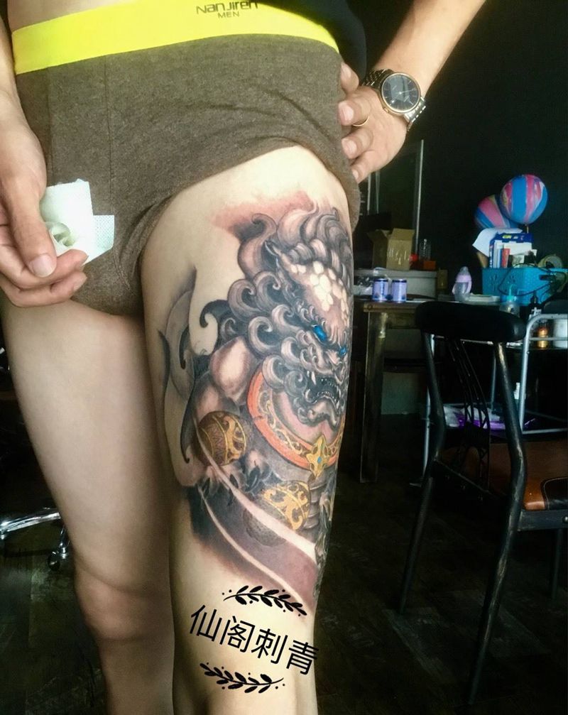 当前位置: 首页 >山东省济宁市纹身店-仙阁刺青纹身图案>富贵唐狮纹身图片