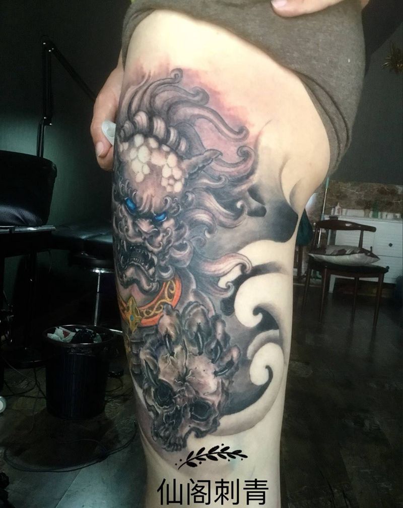 当前位置: 首页 >山东省济宁市纹身店-仙阁刺青纹身图案>富贵唐狮纹身图片