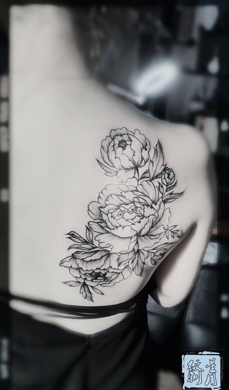 • 黑灰满背纹身图案