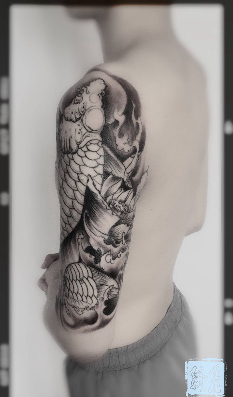 鲤鱼纹身图片_手臂新传统纹身图案