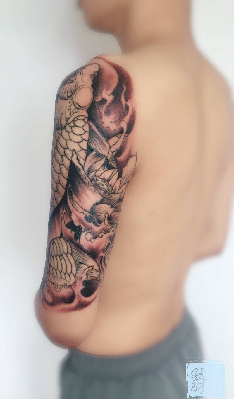 当前位置: 首页 >山东省潍坊市纹身店-星月纹刺纹身图案>鲤鱼纹身图片_手臂新传统纹身图案