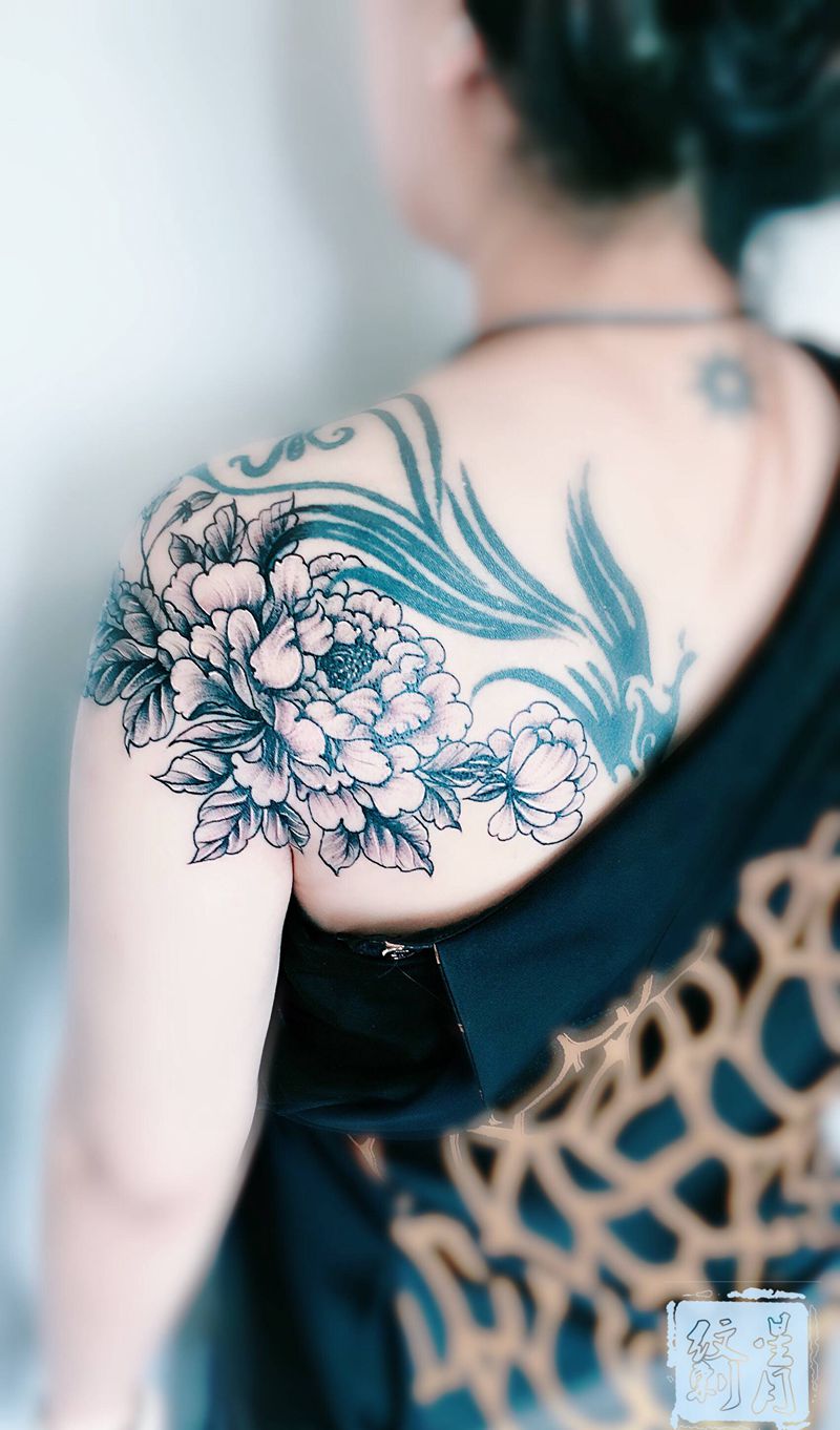 素花纹身图片_肩部点刺纹身图案