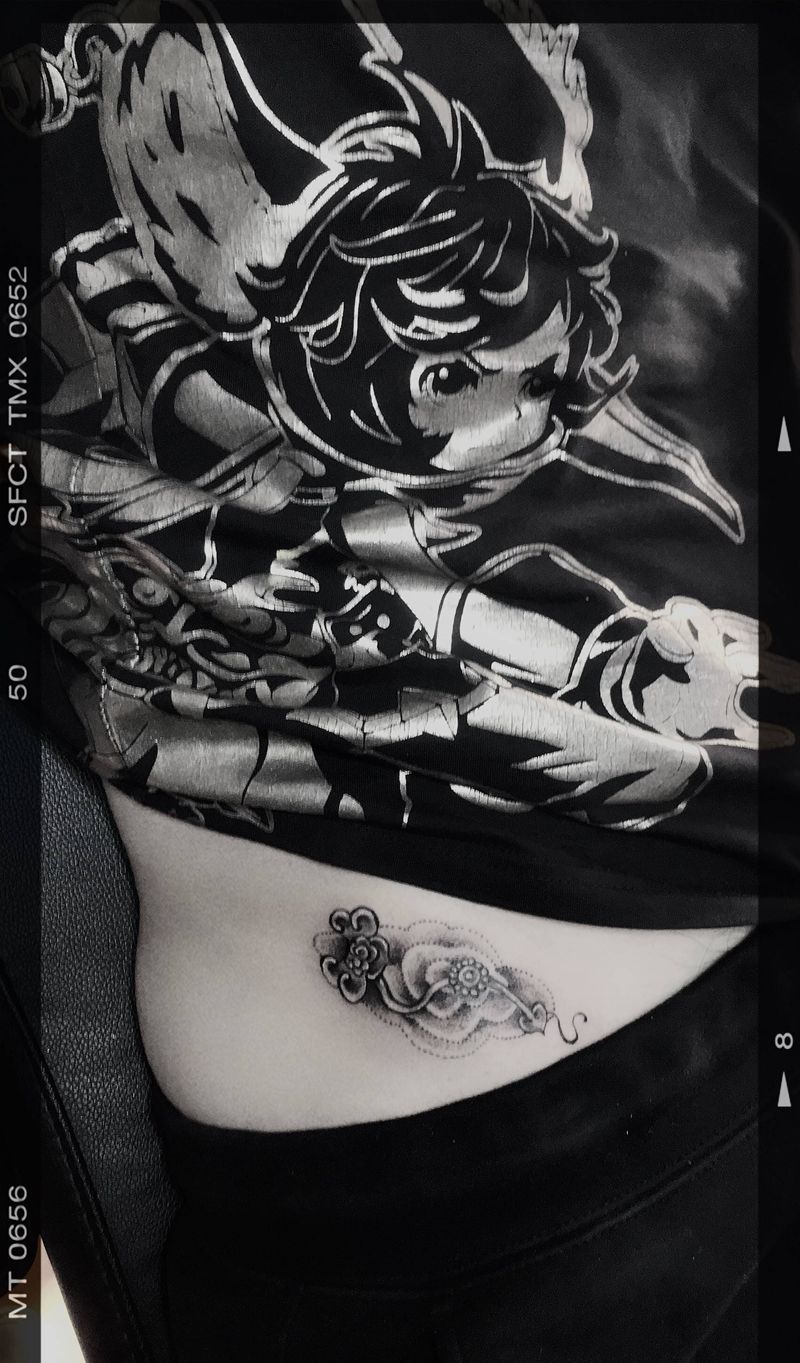 如意,祥云纹身图片_腰部点刺新传统纹身图案