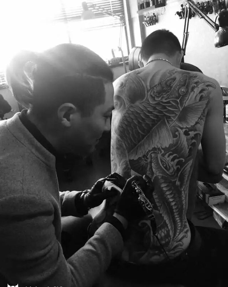 当前位置: 首页 >山东省潍坊市纹身店-星月纹刺纹身图案>传统招财鲤鱼,淡彩纹身图片