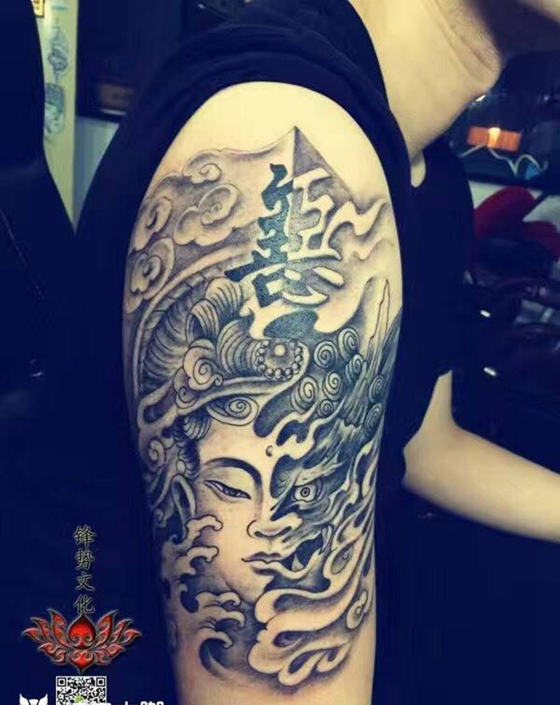 • 纹身吧推荐的披肩图腾半胛纹身图案作品展示
