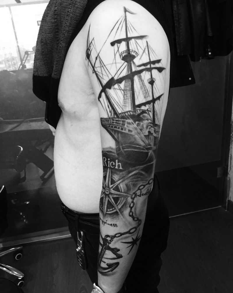 当前位置: 首页 >山东省潍坊市纹身店-星月纹刺纹身图案>欧美帆船纹身图片
