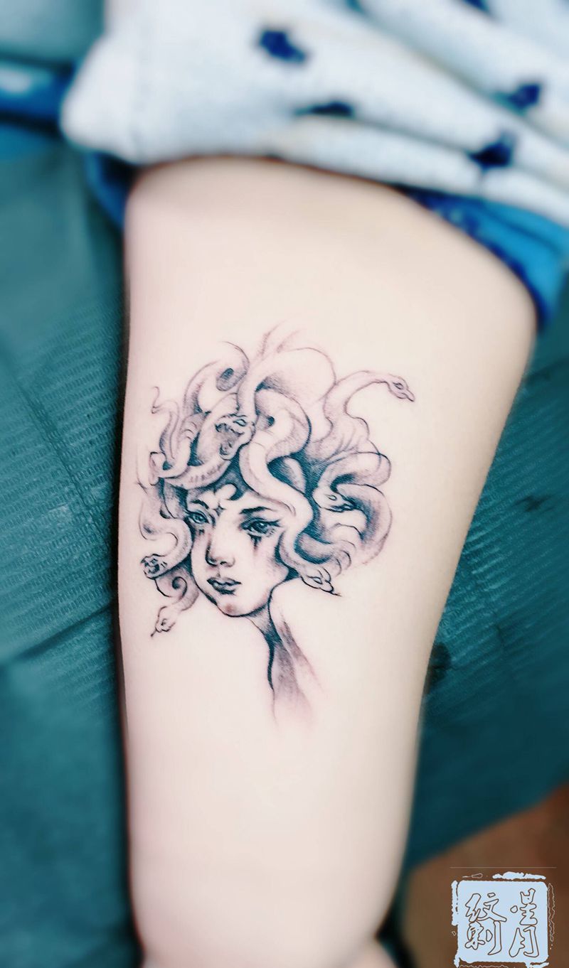 当前位置: 首页 >山东省潍坊市纹身店-星月纹刺纹身图案>美杜莎纹身图片_手臂点刺纹身图案