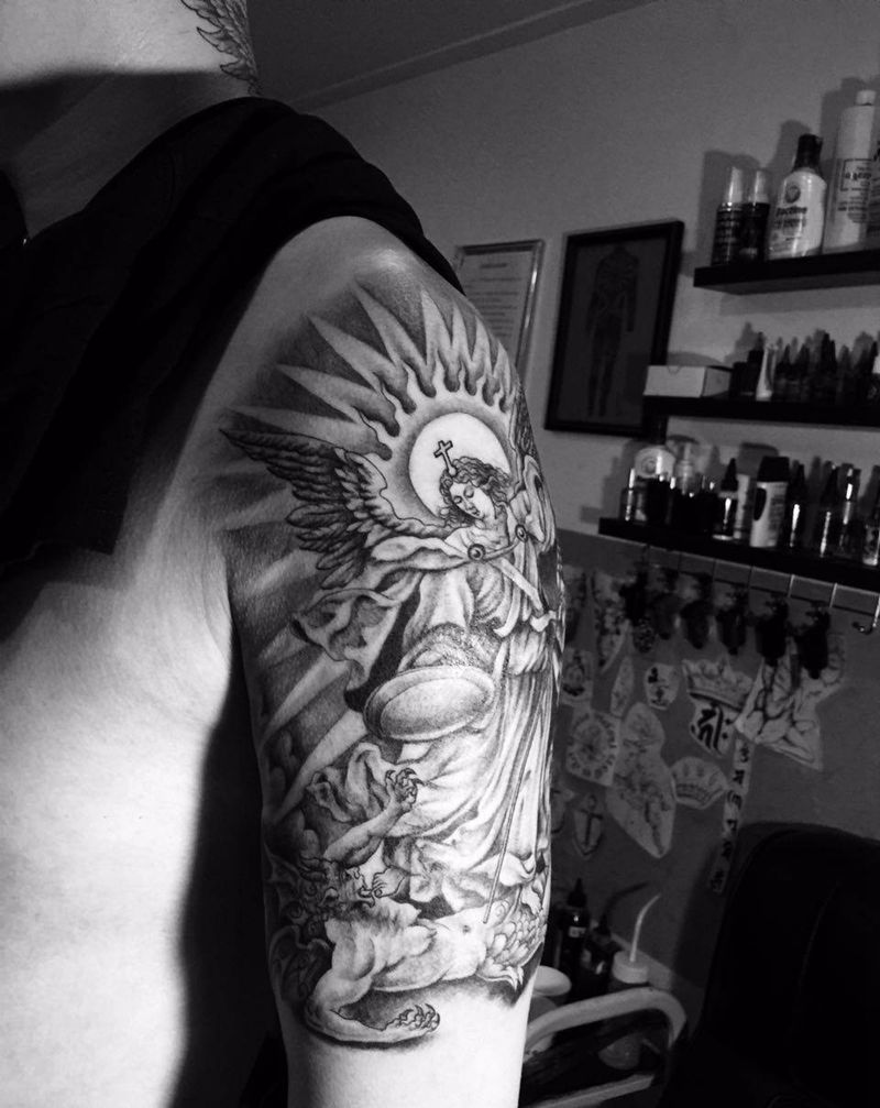 • 纹身吧推荐的披肩图腾半胛纹身图案作品展示