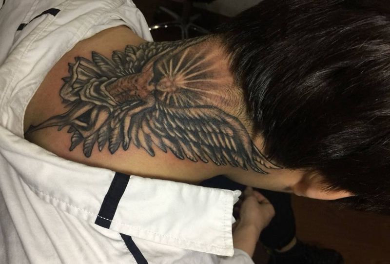 • 纹身吧推荐的披肩图腾半胛纹身图案作品展示