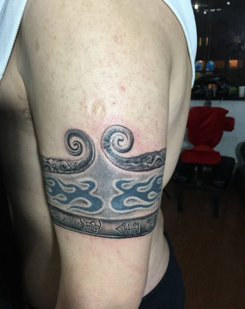 当前位置: 首页 >山东省潍坊市纹身店-星月纹刺纹身图案>紧箍臂环纹身图片