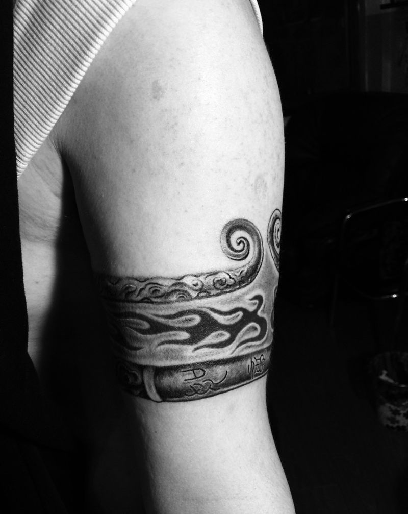 当前位置: 首页 >山东省潍坊市纹身店-星月纹刺纹身图案>紧箍臂环纹身图片