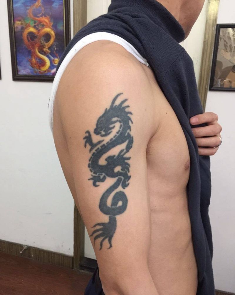• T网红王老大花腿龙纹身图片_腿部新传统纹身图案