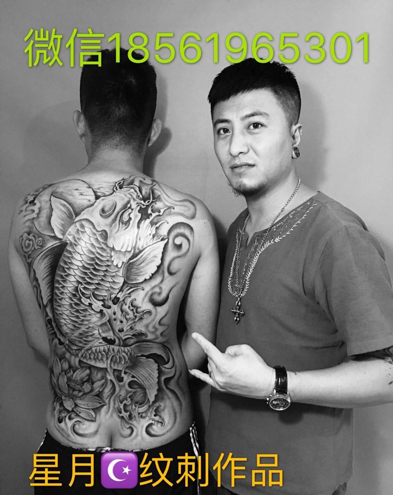 当前位置: 首页 >山东省潍坊市纹身店-星月纹刺纹身图案>满背鲤鱼底色纹身图片