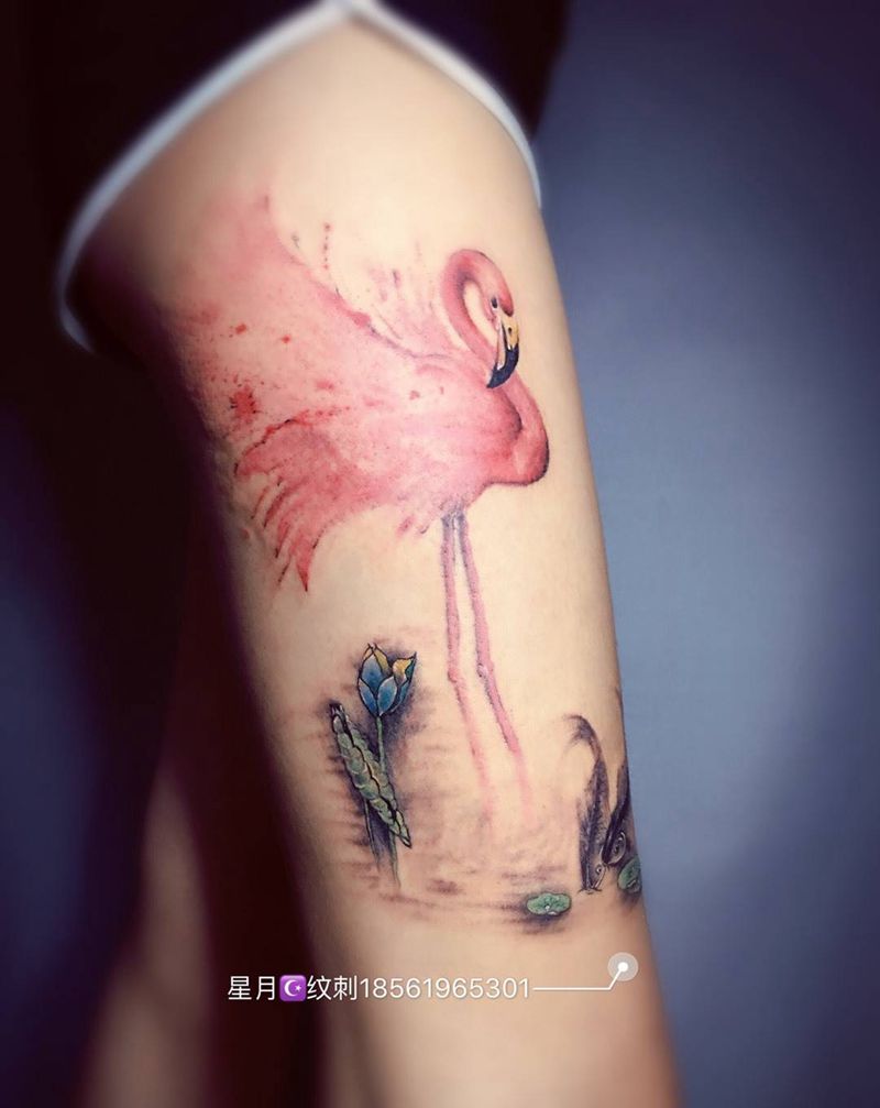 当前位置: 首页 >山东省潍坊市纹身店-星月纹刺纹身图案>火烈鸟纹身图片