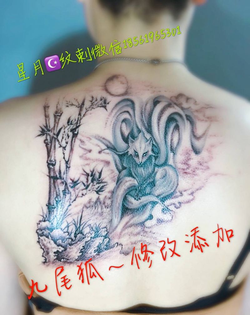 当前位置: 首页 >山东省潍坊市纹身店-星月纹刺纹身图案>九尾狐修改添加纹身图片
