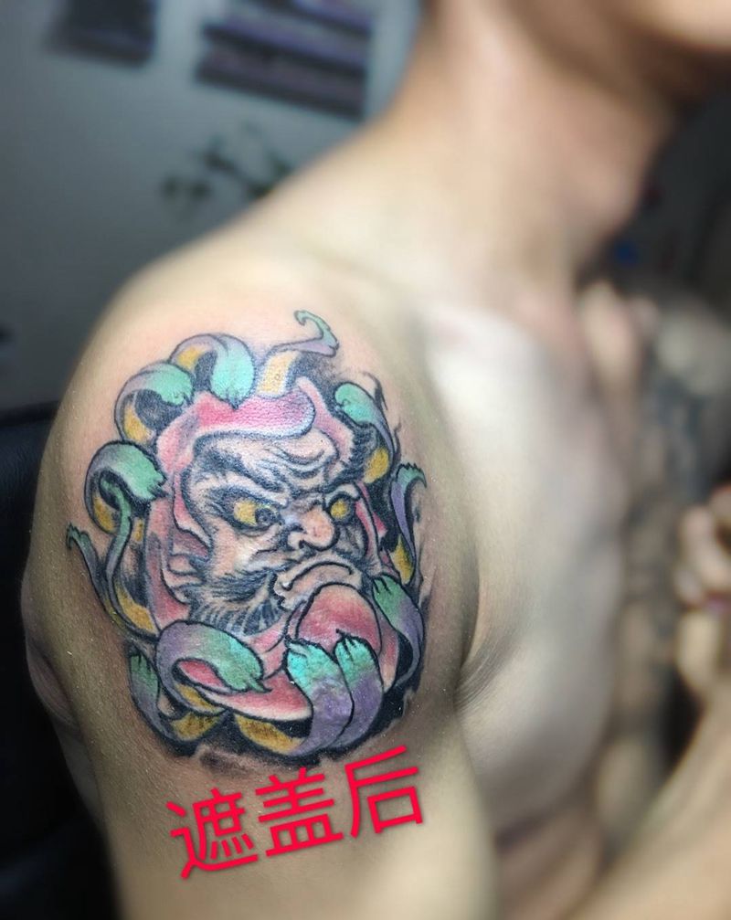 当前位置: 首页 >山东省潍坊市纹身店-星月纹刺纹身图案>疤痕遮盖纹身图片