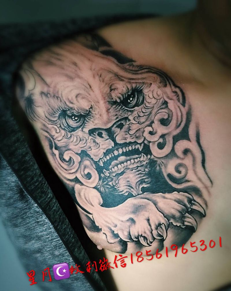 当前位置: 首页 >山东省潍坊市纹身店-星月纹刺纹身图案>唐狮纹身图片