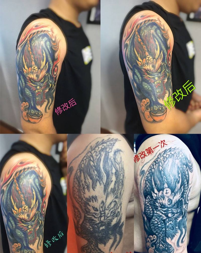 • T网红王老大花腿龙纹身图片_腿部新传统纹身图案