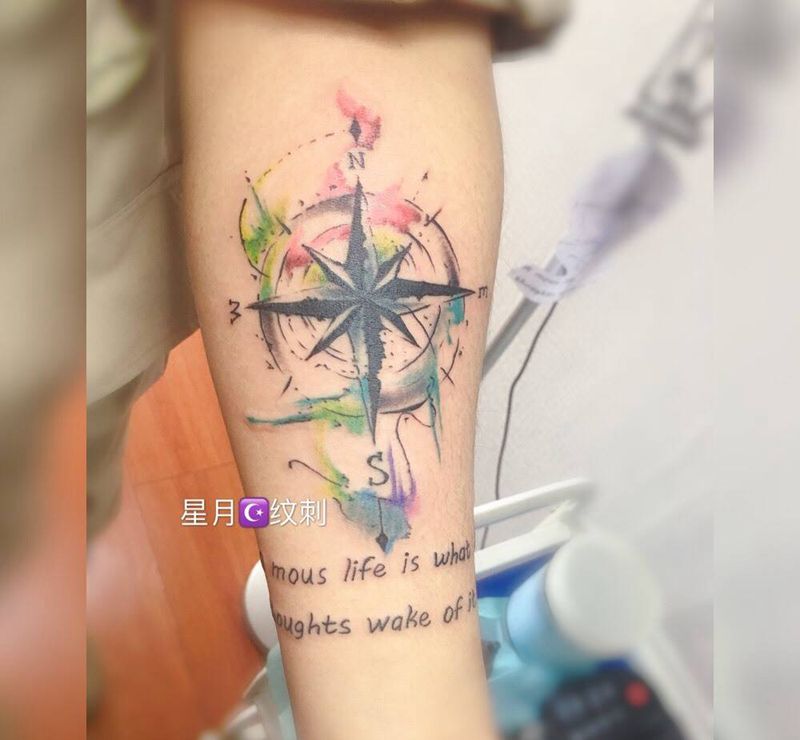 当前位置: 首页 >山东省潍坊市纹身店-星月纹刺纹身图案>指南针纹身图片
