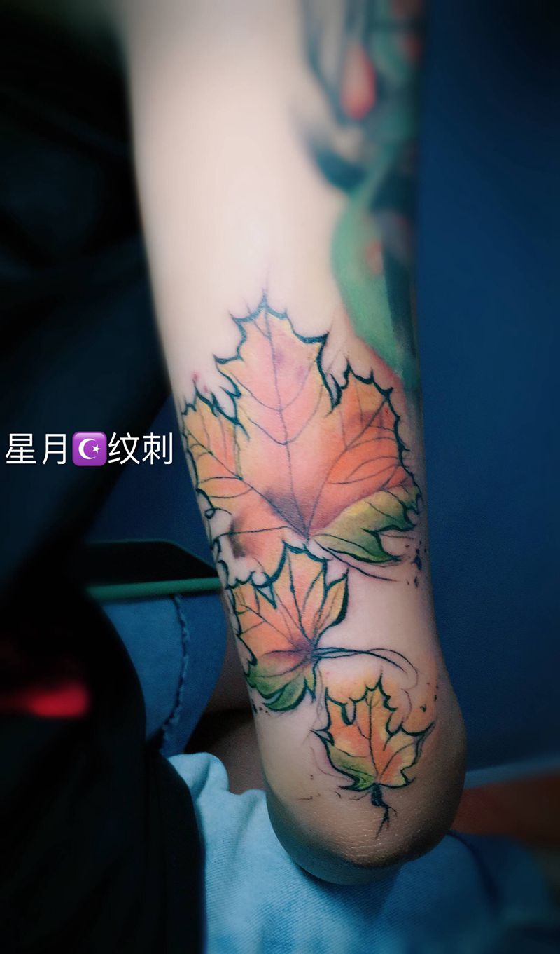 当前位置: 首页 >山东省潍坊市纹身店-星月纹刺纹身图案>枫叶纹身图片_手臂纹身图案