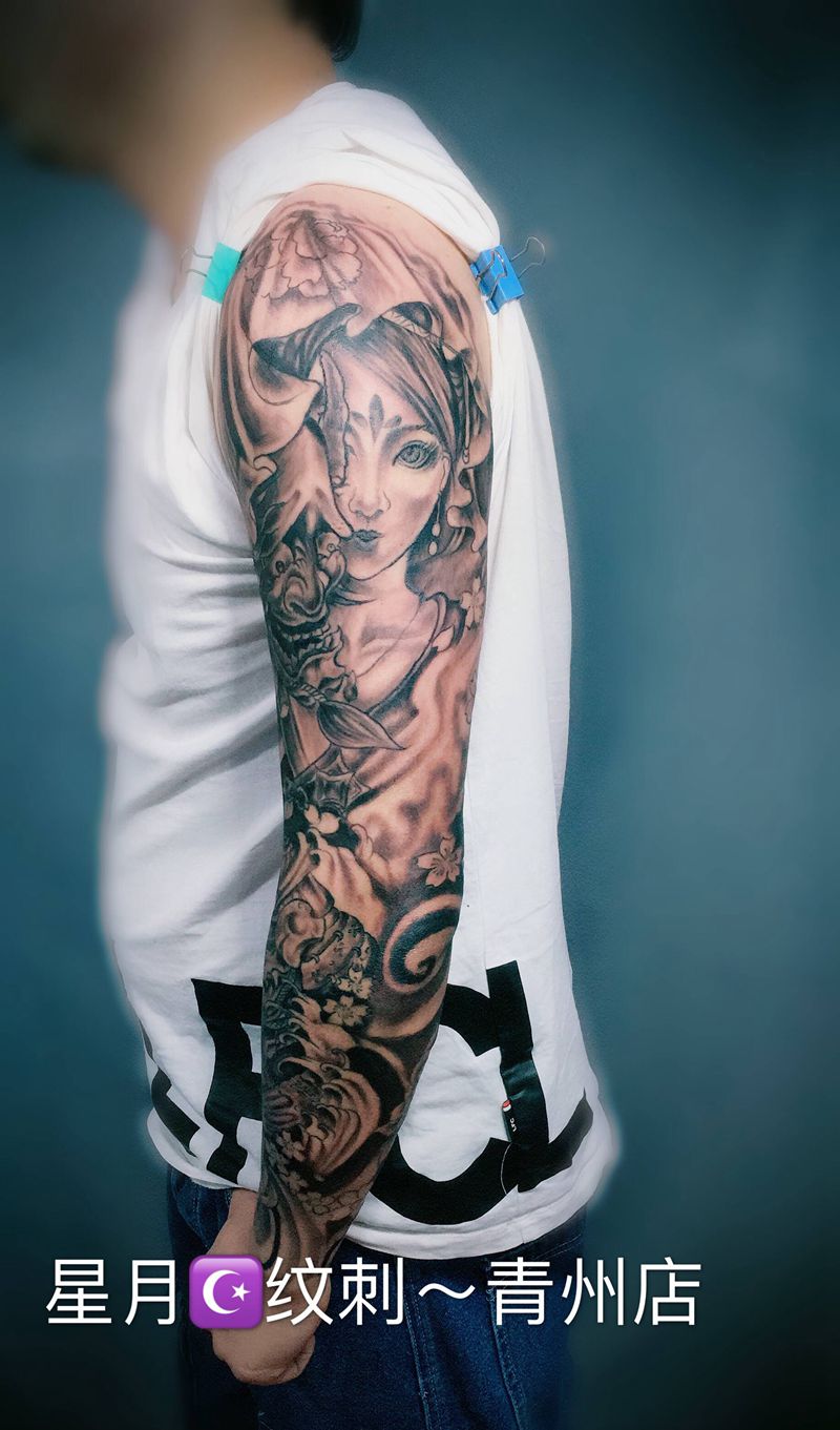 当前位置: 首页 >山东省潍坊市纹身店-星月纹刺纹身图案>花臂,艺妓,班若,幕府将军纹身图片_手臂纹身图案