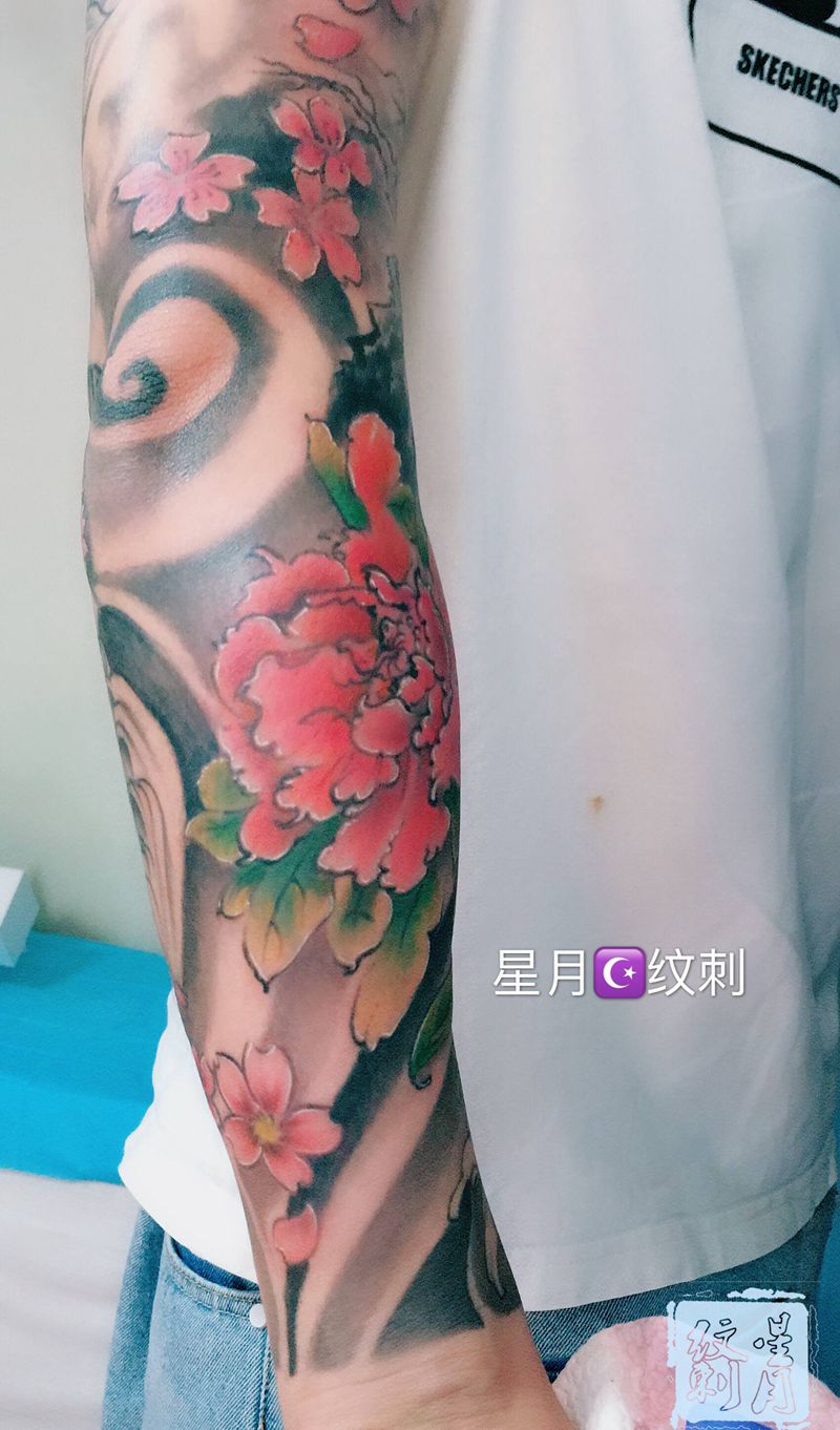 当前位置: 首页 >山东省潍坊市纹身店-星月纹刺纹身图案>牡丹,花臂纹身图片_手臂纹身图案