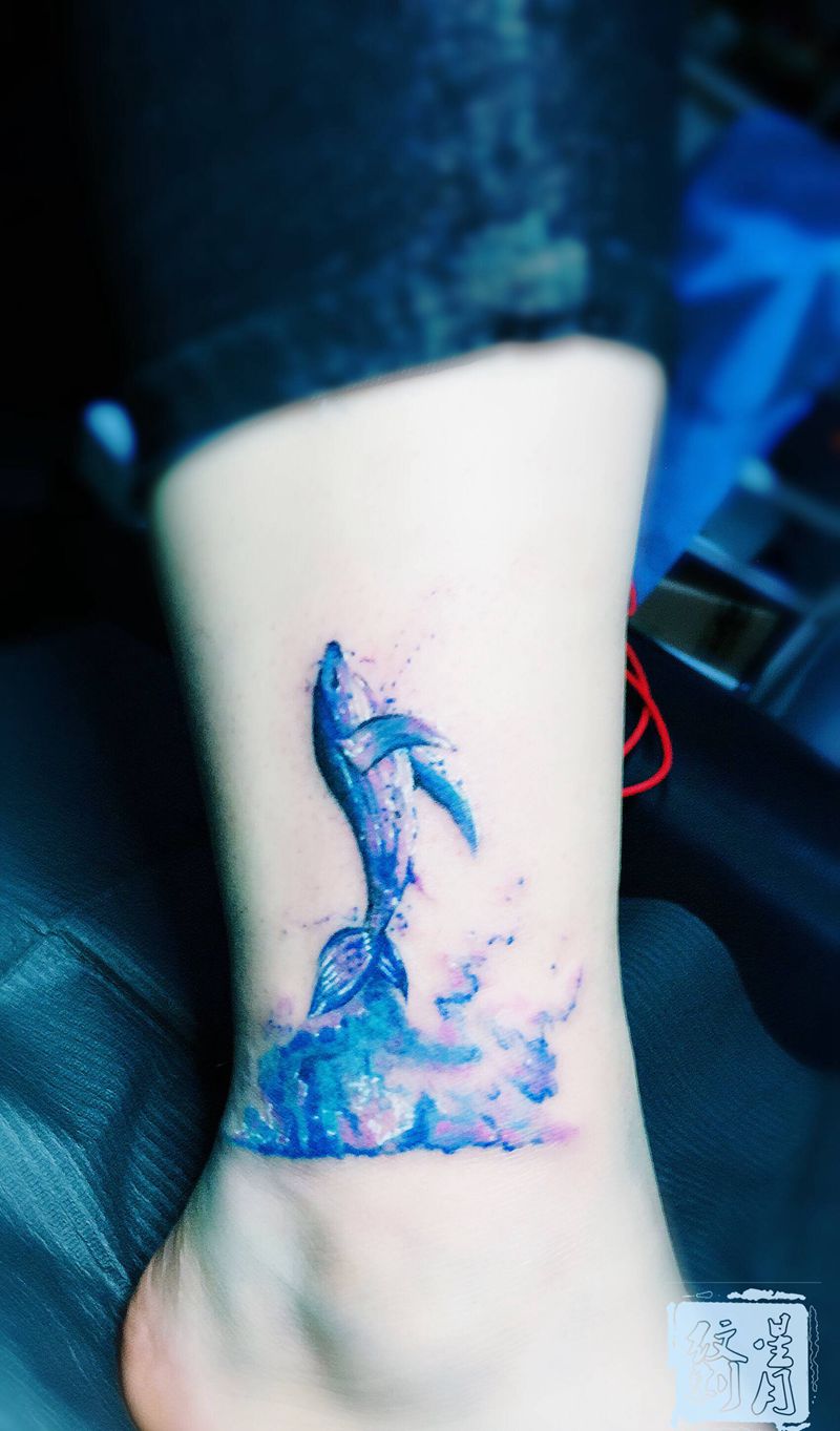 鲲纹身图片_脚部水彩纹身图案