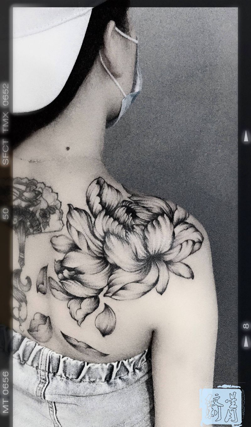 素花,披肩纹身图片_肩部纹身图案