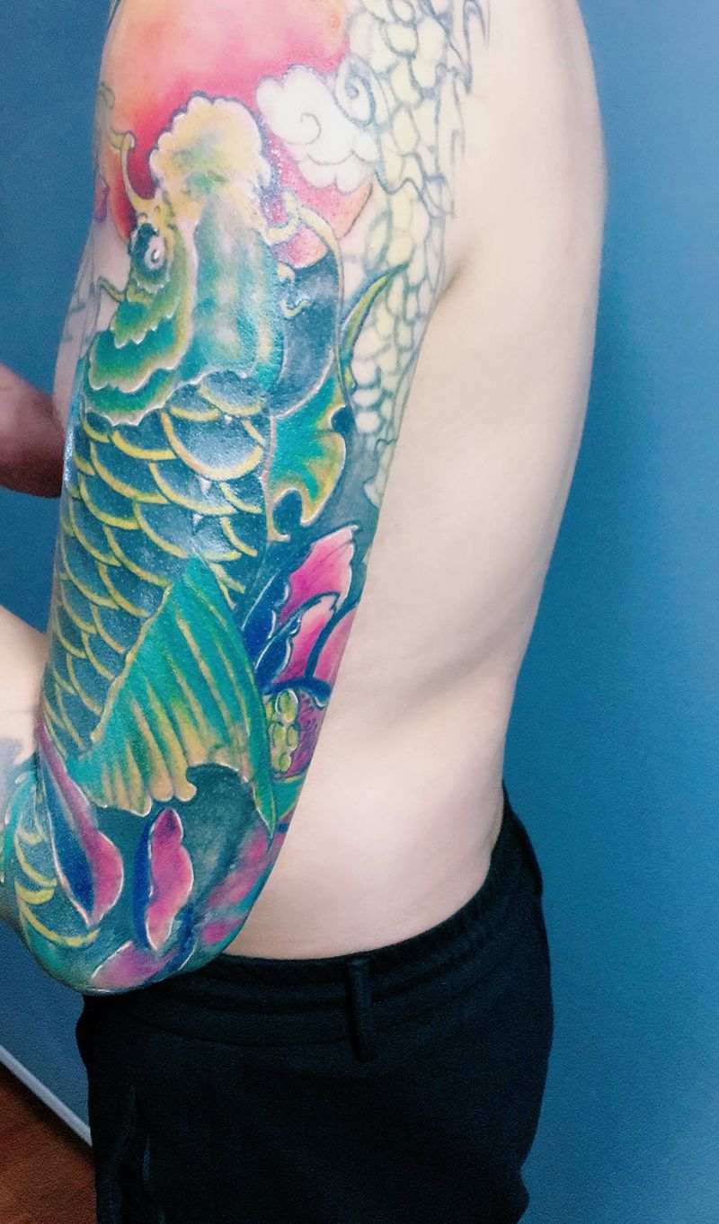 • T网红王老大花腿龙纹身图片_腿部新传统纹身图案