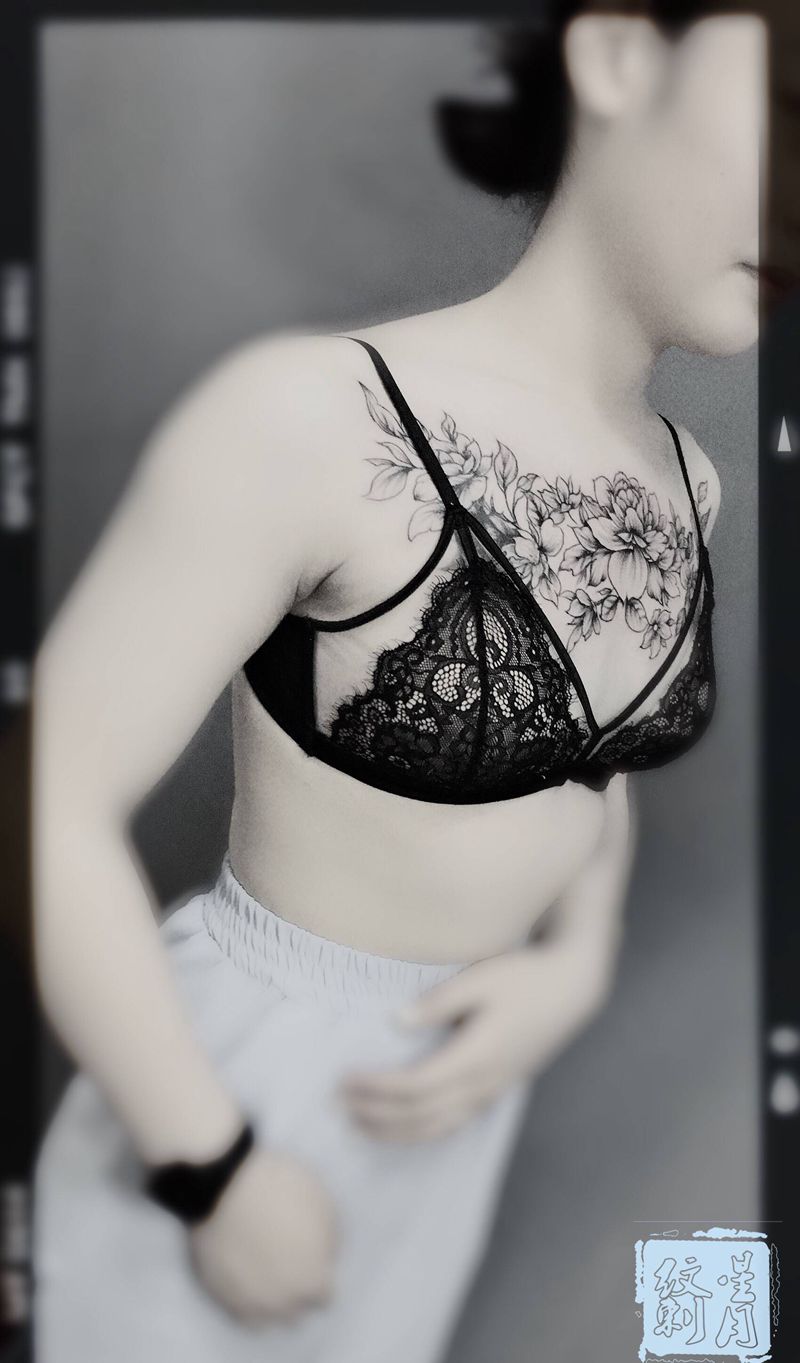 • 女性大花胸纹身_43张霸气漂亮的女性大花胸纹身图案作品