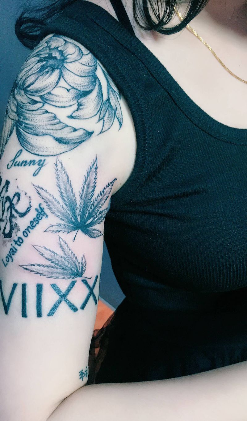 当前位置: 首页 >山东省潍坊市纹身店-星月纹刺纹身图案>大麻叶子纹身图片_手臂图腾纹身图案