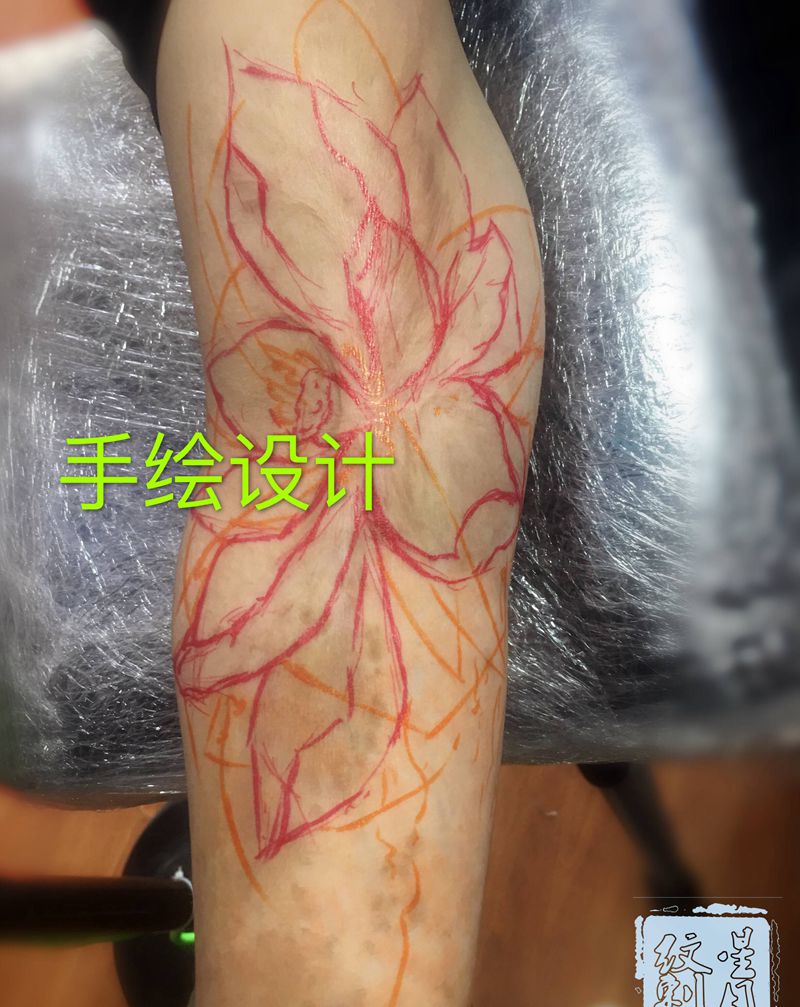 疤痕遮盖,荷花纹身图片_手臂水彩几何纹身图案