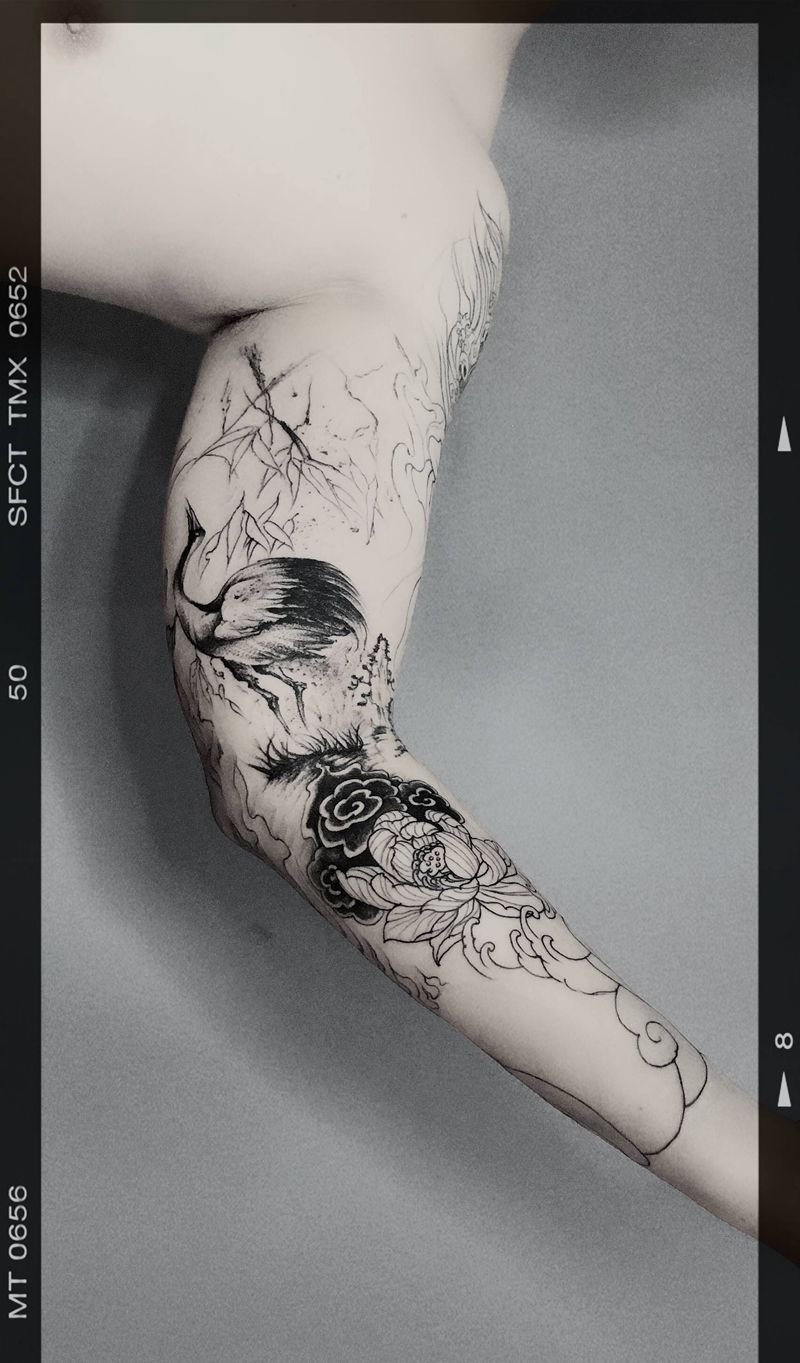 当前位置: 首页 >山东省潍坊市纹身店-星月纹刺纹身图案>九分花臂衔接纹身图片_手臂老传统水墨纹身图案