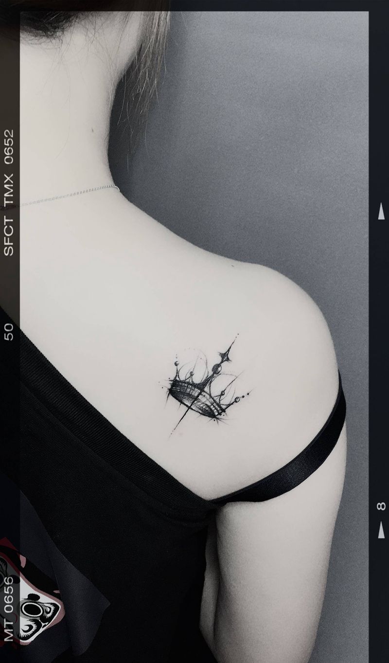 情侣皇冠纹身图片_肩部几何水墨纹身图案