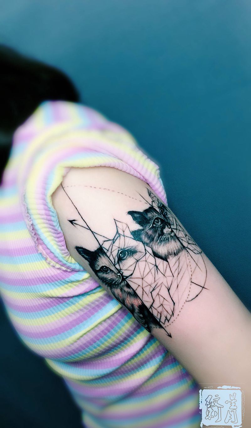 当前位置: 首页 >山东省潍坊市纹身店-星月纹刺纹身图案>猫纹身图片_手臂几何纹身图案