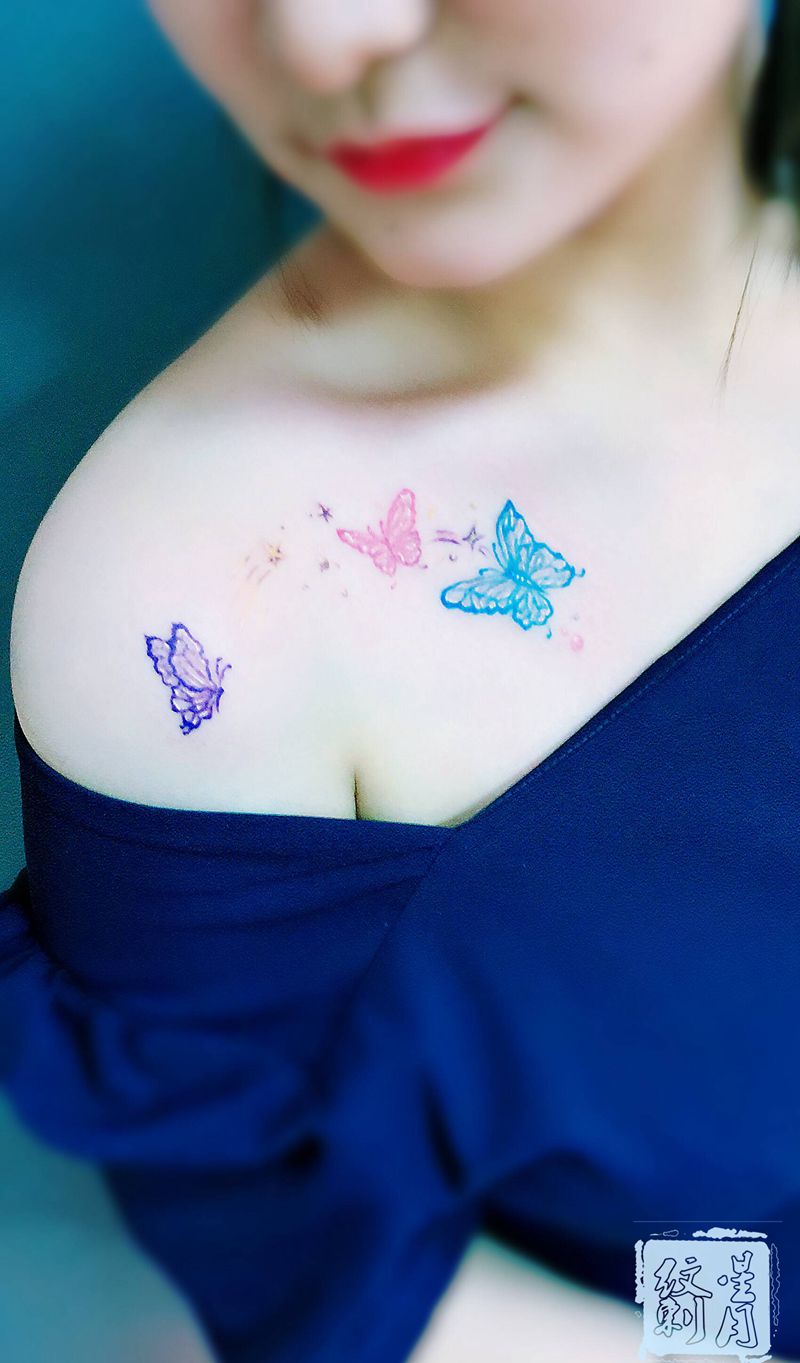 当前位置: 首页 >山东省潍坊市纹身店-星月纹刺纹身图案>彩色小蝴蝶纹身图片_胸部肩部水彩纹身图案