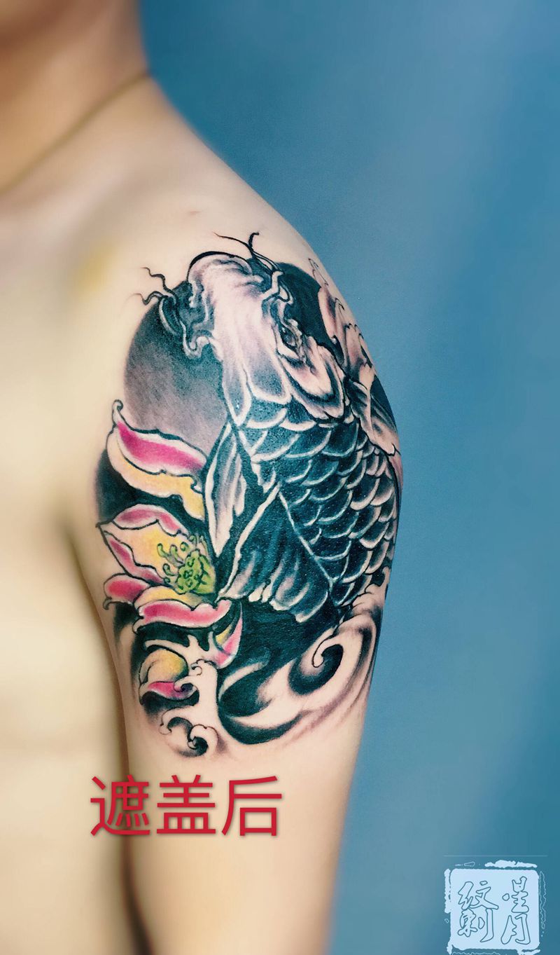 鲤鱼,遮盖纹身图片_手臂新传统纹身图案
