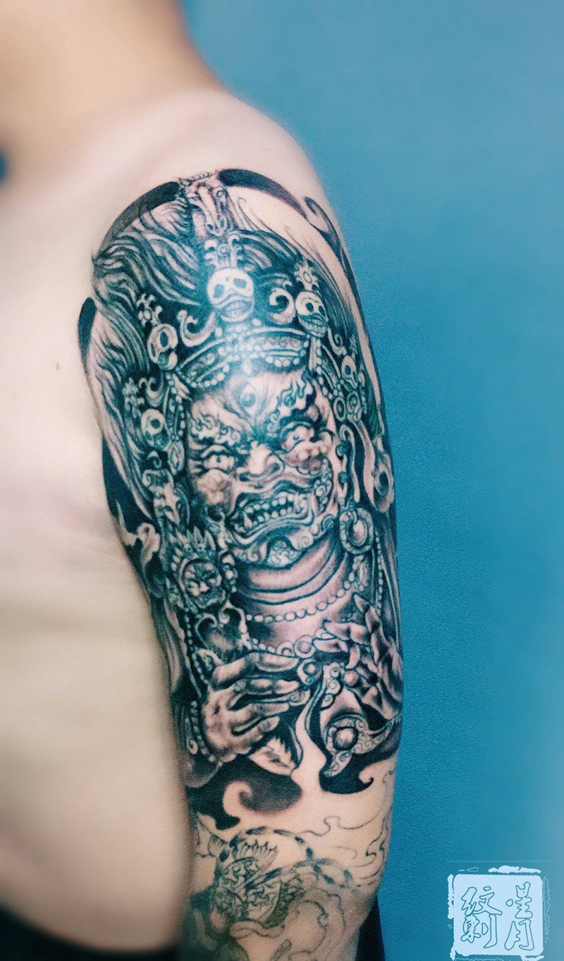 大黑天纹身图片_手臂老传统纹身图案