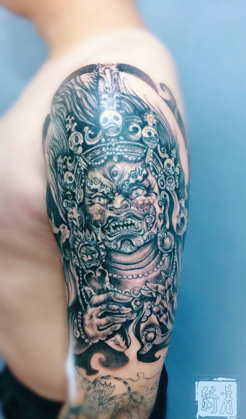 大黑天纹身图片_手臂老传统纹身图案