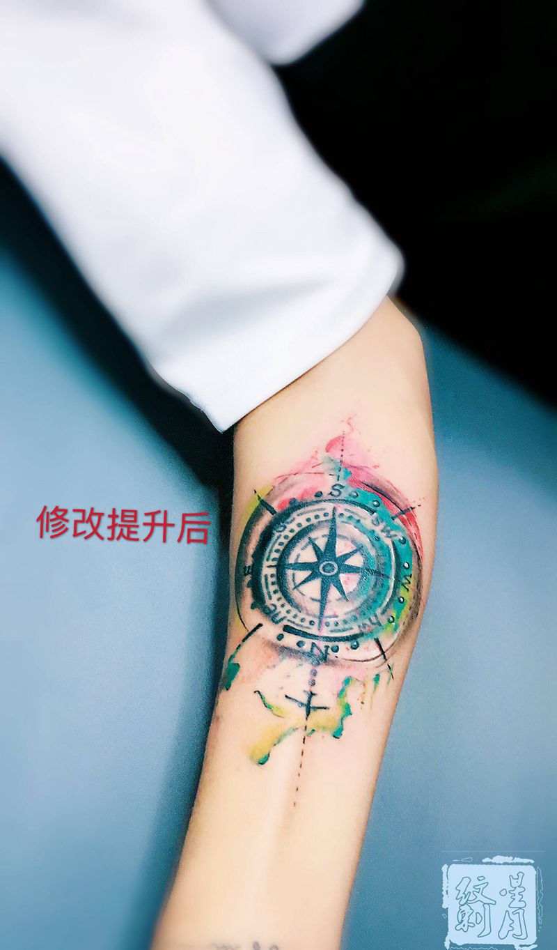 当前位置: 首页 >山东省潍坊市纹身店-星月纹刺纹身图案>修改,提升指南针纹身图片_手臂水彩水墨纹身图案