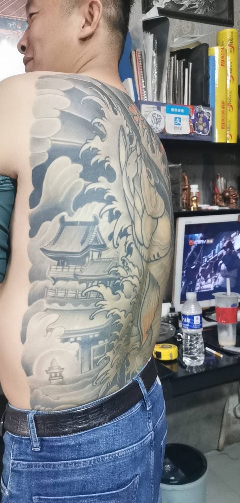 当前位置: 首页 >山东省济宁市纹身店-洪武刺青工作室纹身图案>满背金龙鱼纹身图片_背部纹身图案