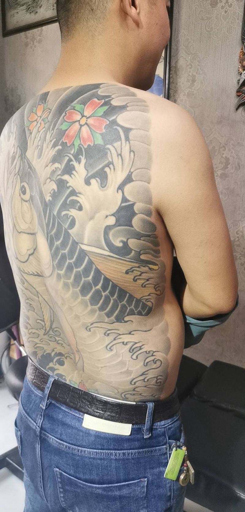 当前位置: 首页 >山东省济宁市纹身店-洪武刺青工作室纹身图案>满背金龙鱼纹身图片_背部纹身图案