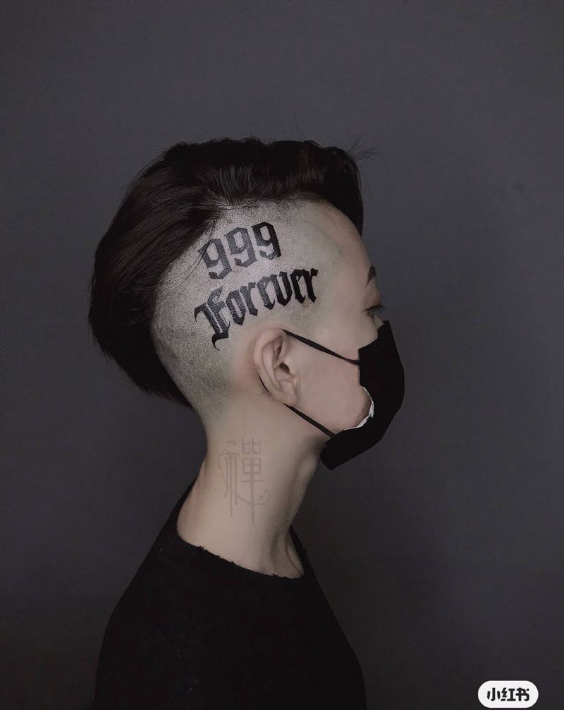 999Forever纹身图片_颈部花体字图腾头皮花体字纹身图案