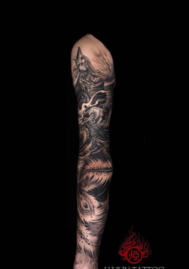 当前位置: 首页 >山东省济宁市纹身店-禅心刺青艺术空间纹身图案>花臂 凤凰九舞天纹身图片_手臂新传统水墨凤凰花臂纹身图案